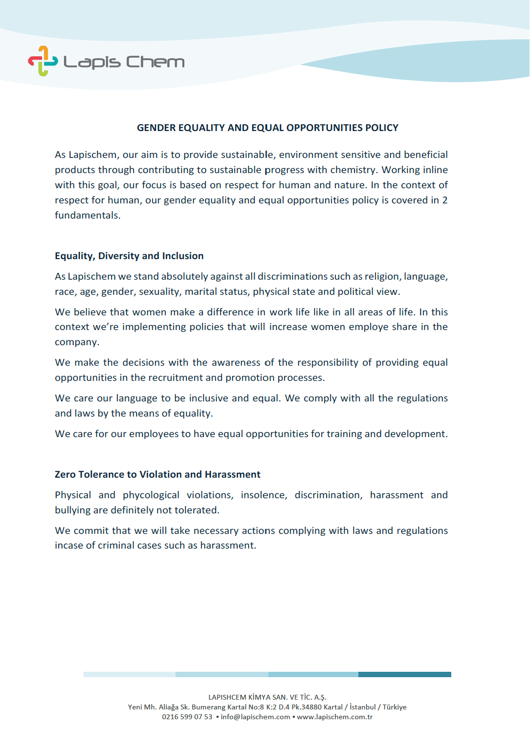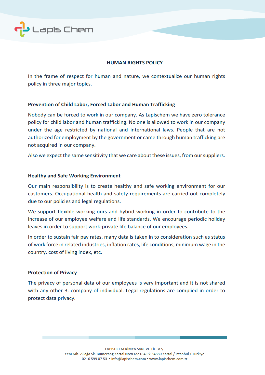 As LapisChem, we are aware of the importance of sustainable development in the field of chemical supply in which we operate. In this context, we keep sustainability at the core of our business. Respect for nature and humanity are central to our business.