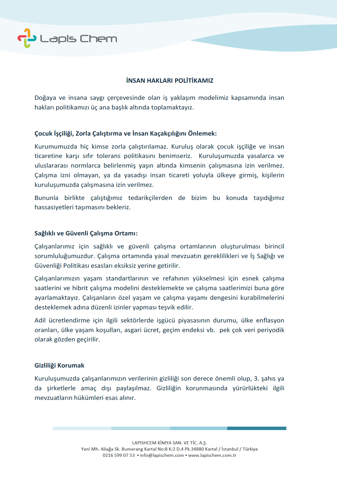 As LapisChem, we are aware of the importance of sustainable development in the field of chemical supply in which we operate. In this context, we keep sustainability at the core of our business. Respect for nature and humanity are central to our business.